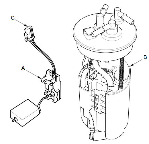 Remove the fuel level sensor (fuel sending unit) (A) from the fuel tank unit (B).